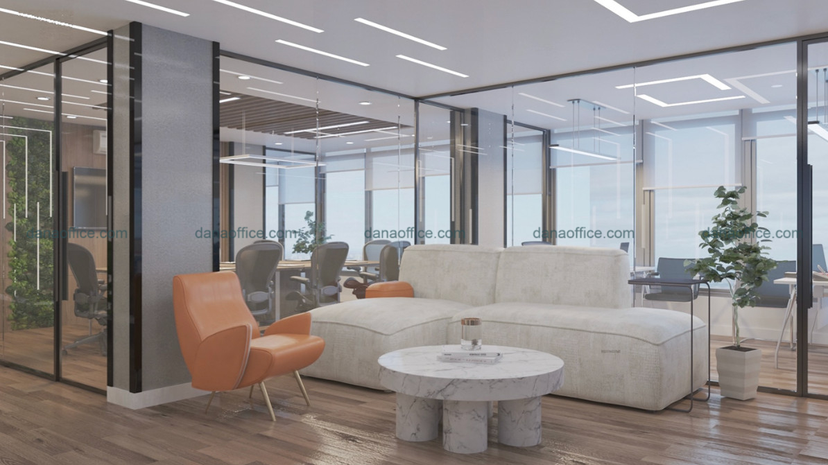 Đây là lựa chọn phổ biến của nhiều doanh nghiệp tại Đà Nẵng. Thiết kế tập trung vào đường nét tinh gọn, màu sắc trung tính và nội thất tối giản. Không gian rộng rãi, thoáng đãng giúp sảnh văn phòng trở nên chuyên nghiệp, sang trọng.